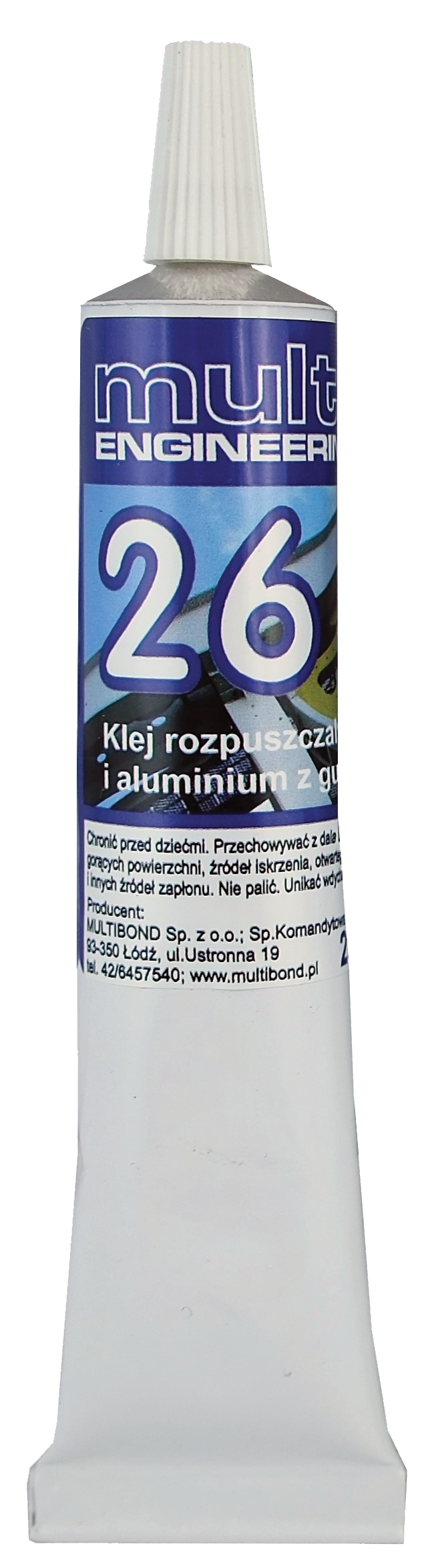 | MULTIBOND 26 | 20ml | uniwersalny płynny klej rozpuszczalnikowy do klejenia gumy i metali. Łączy również inne materiały takie jak drewno, skóra, tkaniny. Tworzy spoiny elastyczne w kolorze beżowym. Do przyklejania uszczelek gumowych, napraw dętek (potrzebna łatka z gumy). |