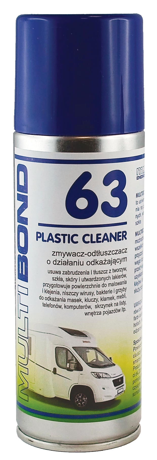 | MULTIBOND 63 | 200ml spray | uniwersalny zmywacz odtłuszczacz na bazie IPA, do usuwania zabrudzeń i tłuszczu z różnych powierzchni – szczególnie przed klejeniem. Bezpieczny dla tworzyw i większości lakierów. Błyskawicznie odparowuje. Używanie tego produktu przed klejeniem produktami typu „ultra MS” wymaga dłuższego odparowania (5-10min). |